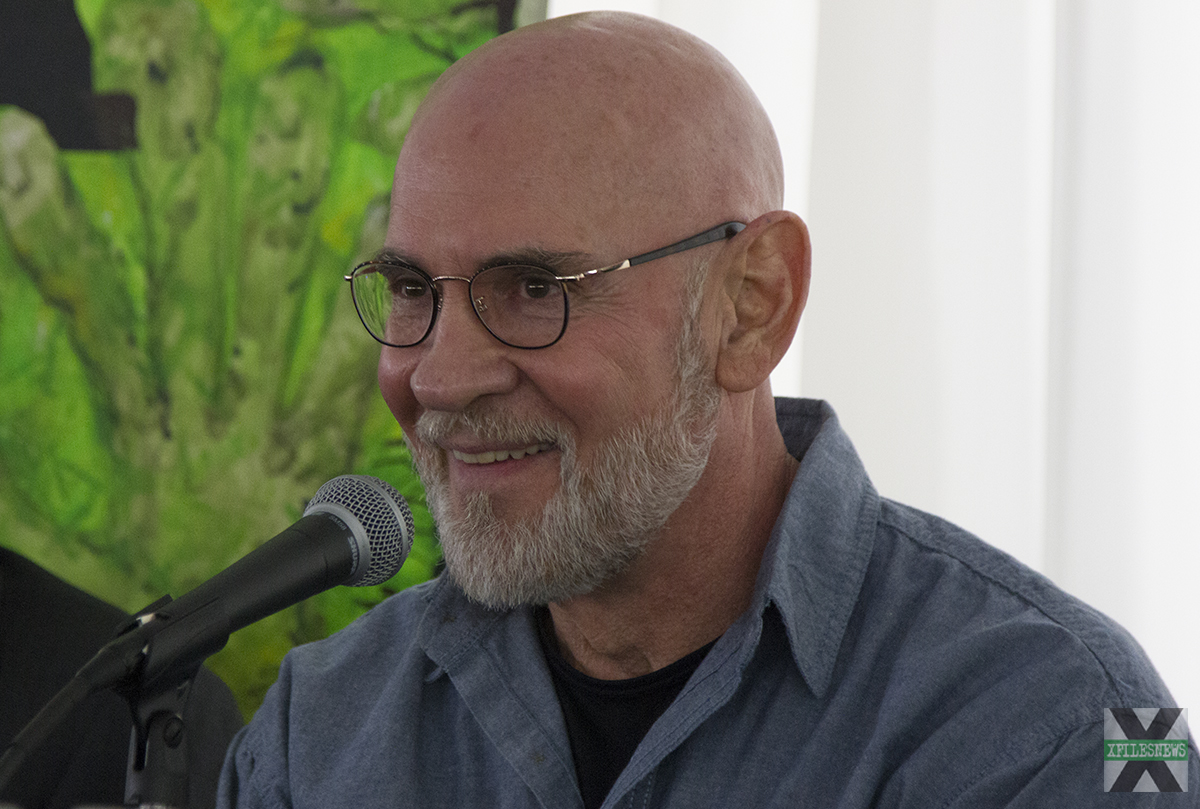 In addition to the usual photo ops and autograph sessions, five different panels gave fans a chance to hear stories and memories from the actors who brought some of our favorite characters to life. Starting the afternoon was the "Monsters of the Week" panel with Steve Railsback, Nick Chinlund, Tom Noonan, and Robert Wisden. Though he's famous for playing one of the creepiest characters in XF history, Chinlund kept the audience laughing. He shared a story about how he and David Duchovny knew each other as kids in school. And I'm sure you can guess what Wisden's, aka Pusher's, answer was when a fan asked him what his favorite color is.